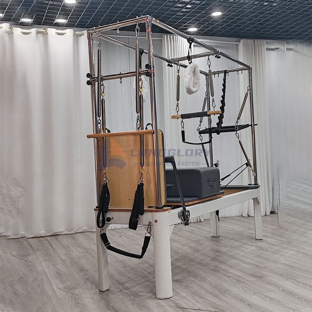 Cadillac Reformer แบบสามในหนึ่งเดียวนี้ช่วยให้ผู้ใช้สามารถออกกำลังกายแบบรีฟอร์มเมอร์ การยืดเส้นยืดสายคาดิลแลคทาวเวอร์ และการฝึกแกนกลางลำตัวแบบไดนามิกบนเครื่องเดียว เพื่อเพิ่มพื้นที่และฟังก์ชันการทำงานให้สูงสุด เหมาะสำหรับสตูดิโอพิลาทิส ศูนย์ฟื้นฟู ห้องออกกำลังกายบูติก และห้องฝึกซ้อมที่บ้าน Aluminium Three in One Pilates Cadillac Reformer รองรับการเคลื่อนไหวที่หลากหลาย รวมถึงท่าวงกลมขา ท่าโรลดาวน์ ลันจ์ การทรงตัวของแกนกลางลำตัว และการออกกำลังกายเพื่อจัดแนวกระดูกสันหลัง