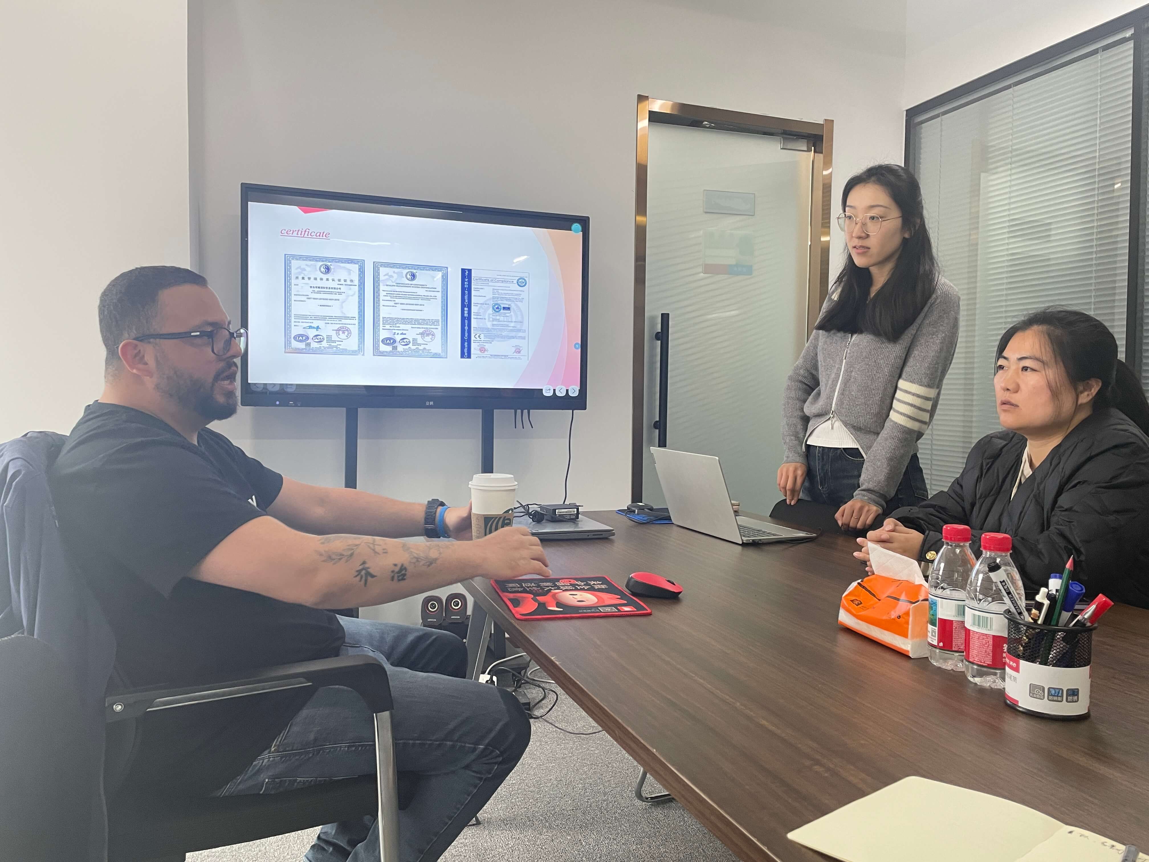 หลังจากทัวร์โชว์รูมเราพาคู่ค้าของเราไปที่โรงงานเพื่อดูกระบวนการผลิตของเราอย่างใกล้ชิด ตั้งแต่การเลือกวัตถุดิบไปจนถึงการตัดเฉือนที่แม่นยำและการควบคุมคุณภาพอย่างเข้มงวดทุกขั้นตอนทำให้เกิดความประทับใจอย่างมาก เขาประทับใจอย่างมากกับงานฝีมือที่พิถีพิถันและมาตรฐานคุณภาพที่เข้มงวดแสดงความมั่นใจอย่างมากในความทนทานและความน่าเชื่อถือของอุปกรณ์ของเรา